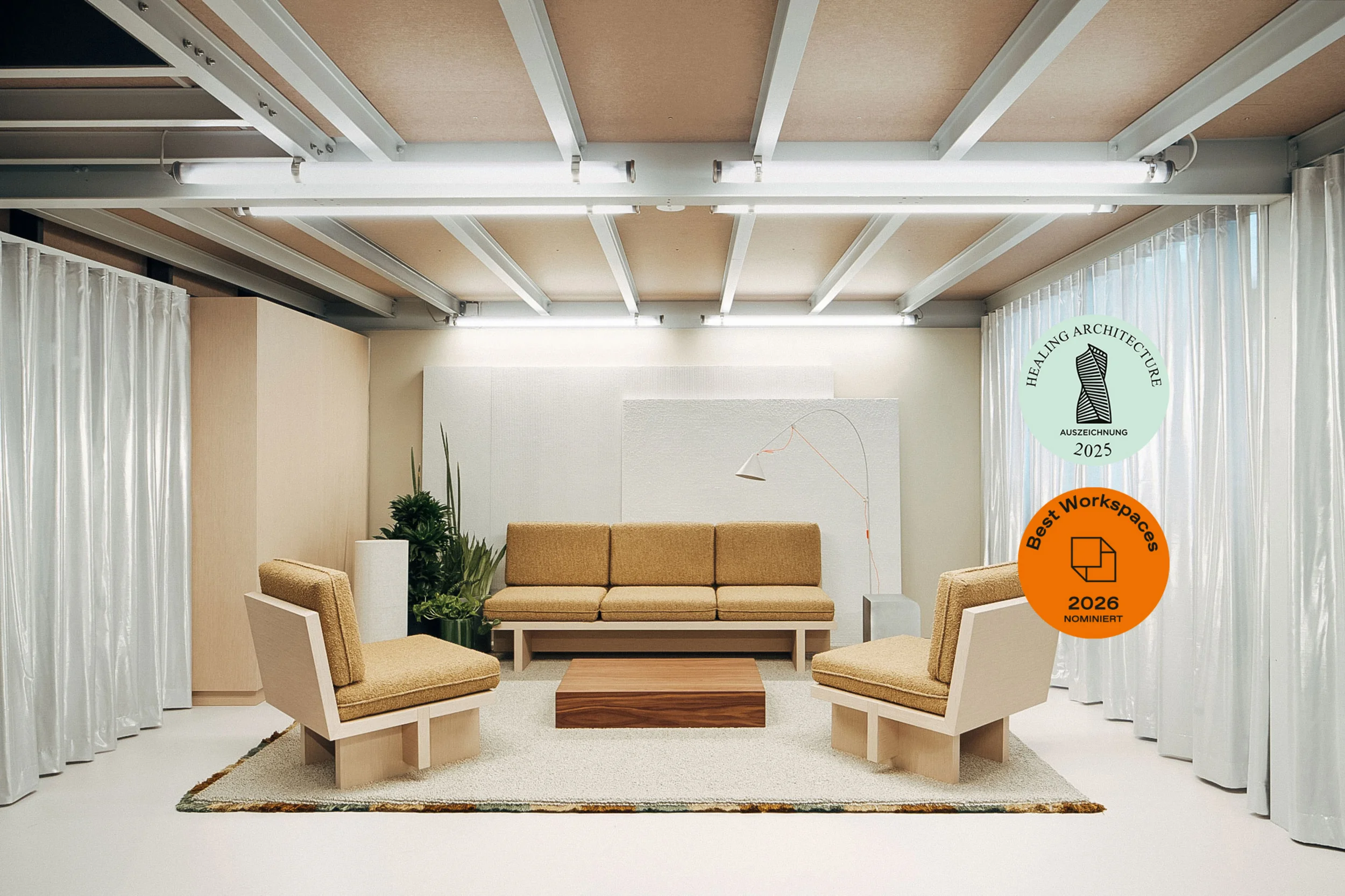 Verantwortlich für Innenarchitektur, Materialabstimmung und Möblierung schuf LEIK eine Arbeitswelt, die Funktion, Wohlbefinden, Markenidentität und räumliche Qualität harmonisch verbindet. Das Projekt wurde mit dem Healing Architecture Award 2025 ausgezeichnet – eine Anerkennung für ganzheitliche Gestaltung, die Menschen in den Mittelpunkt stellt.