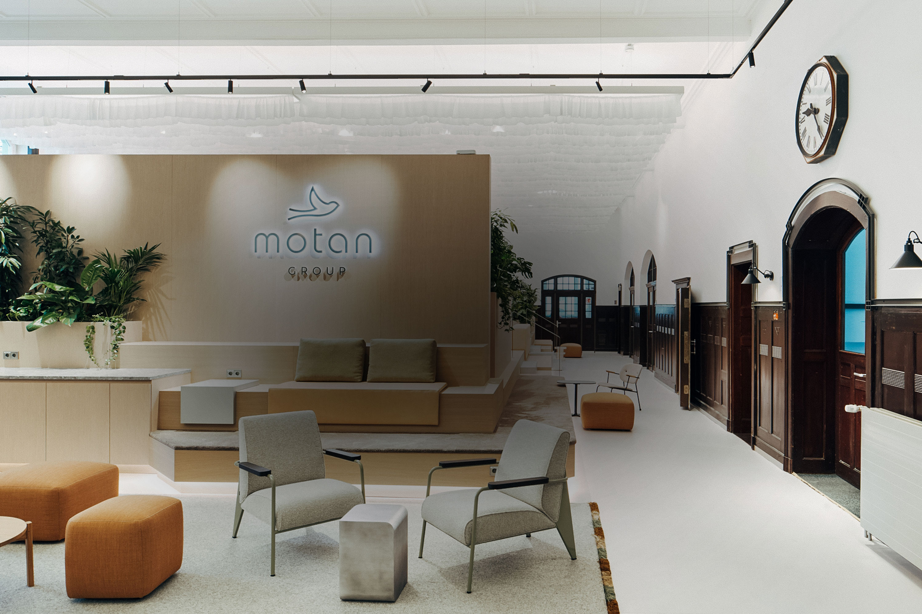Im Konstanzer Standort von motan ist eine Arbeitswelt entstanden, die Geschichte spürbar bewahrt und zugleich konsequent in die Zukunft denkt. Die ehemalige Industriehalle bildet mit ihren fünf Meter hohen Decken, Stahlträgern und ihrer markanten Identität den atmosphärischen Rahmen für ein modernes Arbeitsumfeld, das Menschen verbindet, inspiriert und stärkt. Durch Communication Harbour, Work Podest und Exchange Hub wurde ein Raumgefüge geschaffen, das Offenheit mit Struktur vereint und die Werte des Unternehmens räumlich erlebbar macht.